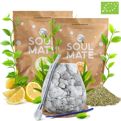 Yerba Mate Sæt Soul Mate Organica 2x500g 1kg Kalabas + Bombilla