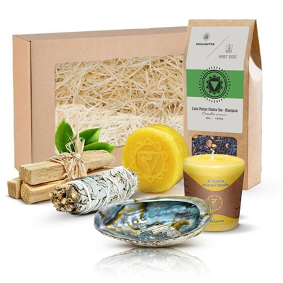 Gavesæt til solar plexus-chakraet (Manipura): chakra-te + røgelse + stearinlys