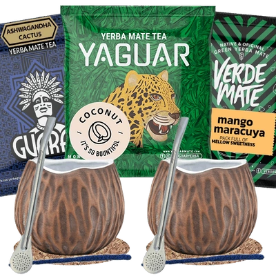 Yerba Mate Sæt til to 3x50g 150g 2x Kalabas + 2x Bombilla