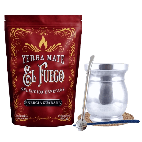 Yerba Mate Sæt: El Fuego Energia Guarana 500g + Palo Santo + Bombilla