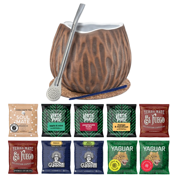 Yerba Mate-sæt 10x50g Calabash Coconut Bombilla 500g