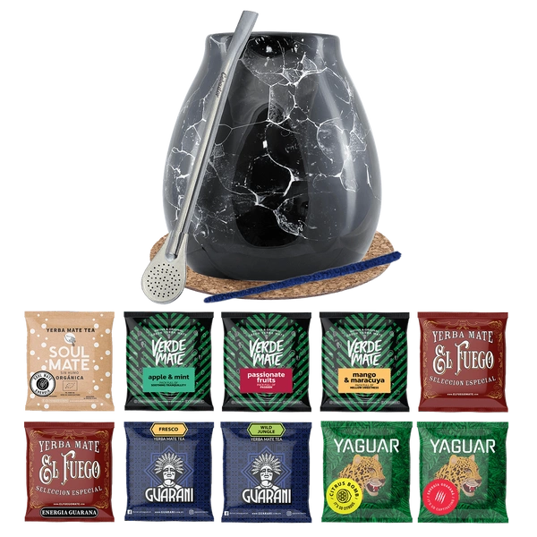 Yerba Mate-sæt 10x50g Calabash Marmol Bombilla