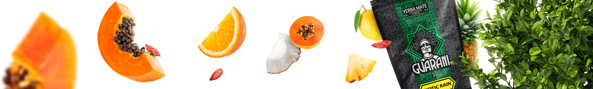 Guarani Exotic Rain kombinerer kraften fra traditionel paraguayansk yerba mate med en tropisk, frugtagtig smag. Tørrede blade af Ilex paraguariensis er blandet med sød mango 🥭, fed papaya og saftig ananas 🍍 - en sammensætning, der vil transportere dine sanser til fjerne eksotiske lande!