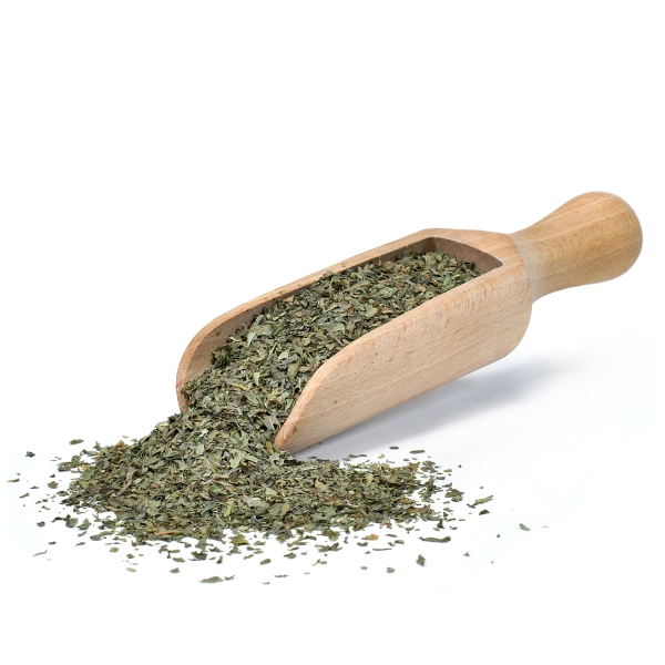 - Fødevareingrediens: Tørrede pebermynteblade kan bruges i mange forskellige opskrifter, som krydderi til grillet kød, fisk, retter med grøntsager, ris eller gryn, og er en fremragende tilføjelse til salater og saucer.
