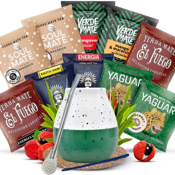 Yerba Mate sæt 10x50g Kalabas + Bombilla