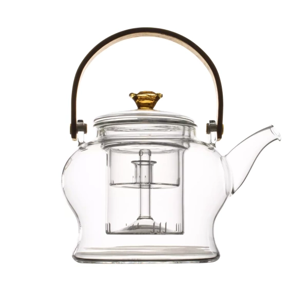 Tekande i glas med brygger til brygning af te, yerba mate og andre infusioner. Smukt udført og behagelig at bruge. Takket være de gennemsigtige glasvægge er det muligt at observere den spektakulære tebrygningsproces inde i kanden.