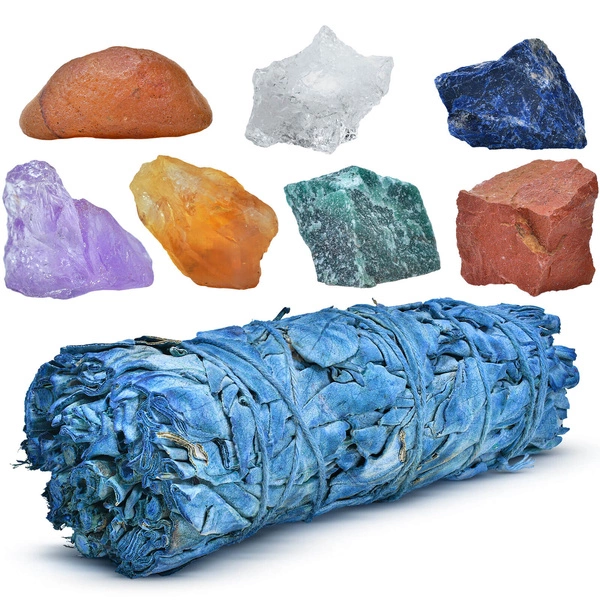 Sæt af natursten, krystaller og røgelse - esoterik, yoga, meditation