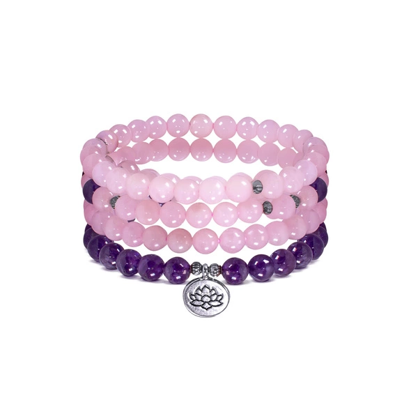 Armbånd Mala med ametyst og rosakvarts – Lotus Flower