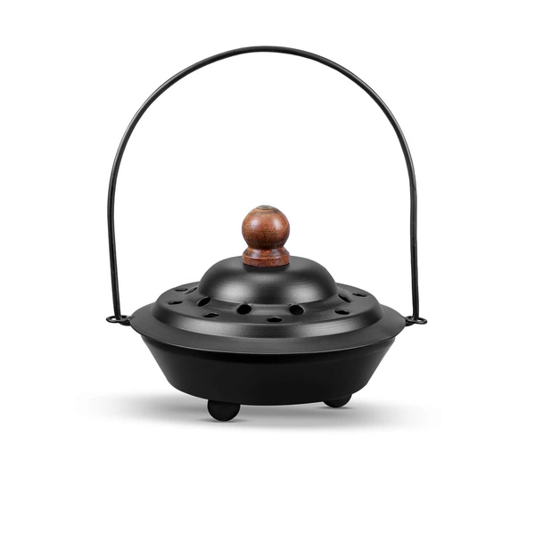 - Røgelsesholder i form af et røgelseskar, fremstillet af jern i høj kvalitet i fjernøstlig stil. Forsynet med låg og håndtag. Den kan bruges til afbrænding af forskellige typer røgelse.