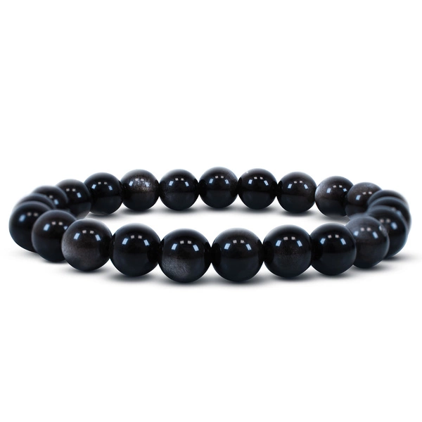 Form: armbånd lavet af poleret sølvglinsende obsidian, trukket på elastisk snor