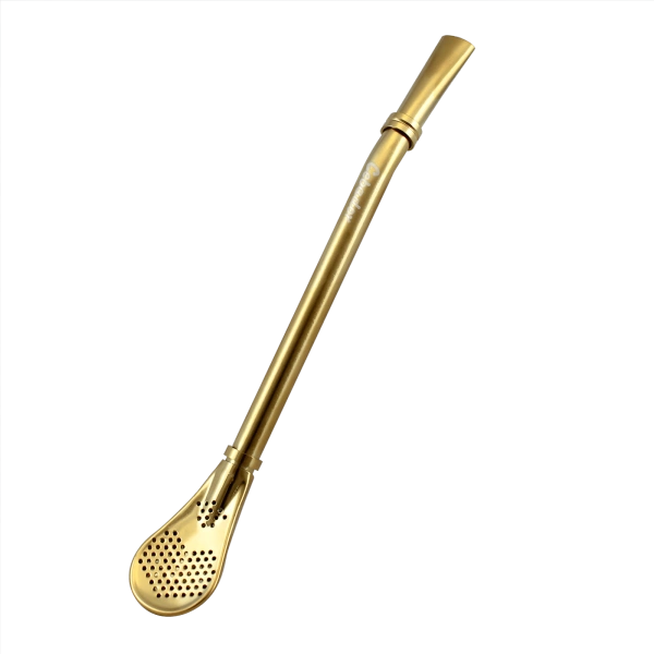 - En omhyggeligt fremstillet bombilla i rustfrit stål, let buet, 15,5 cm lang. Den har et filterelement i form af en si. Et så enkelt design giver god filtrering og problemfri drikning.