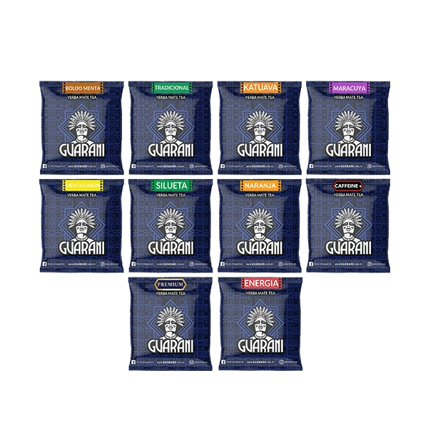 Vær opmærksom på, at smagsnavnene på yerba mate-prøverne står på bagsiden af etiketten, lige ved siden af ingrediensoplysningerne.