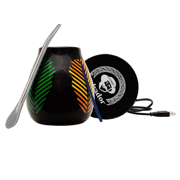 Sæt med Tilbehør til Yerba Mate: USB-kopholdervarmer + Kalabas + Bombilla
